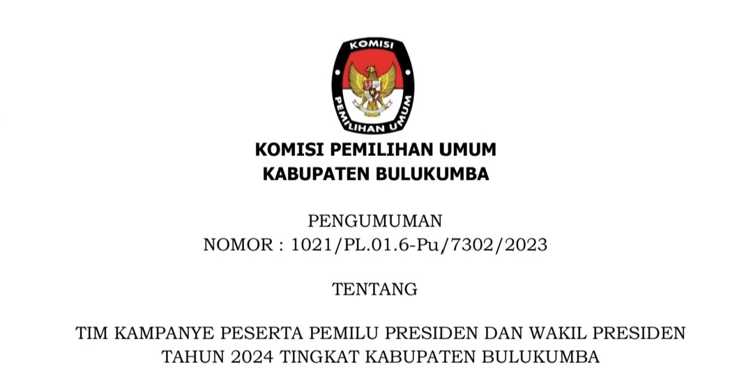 HASIL PENELITIAN ADMINISTRASI CALON ANGGOTA KPPS PEMILU TAHUN 2024 TINGKAT KABUPATEN BULUKUMBA
